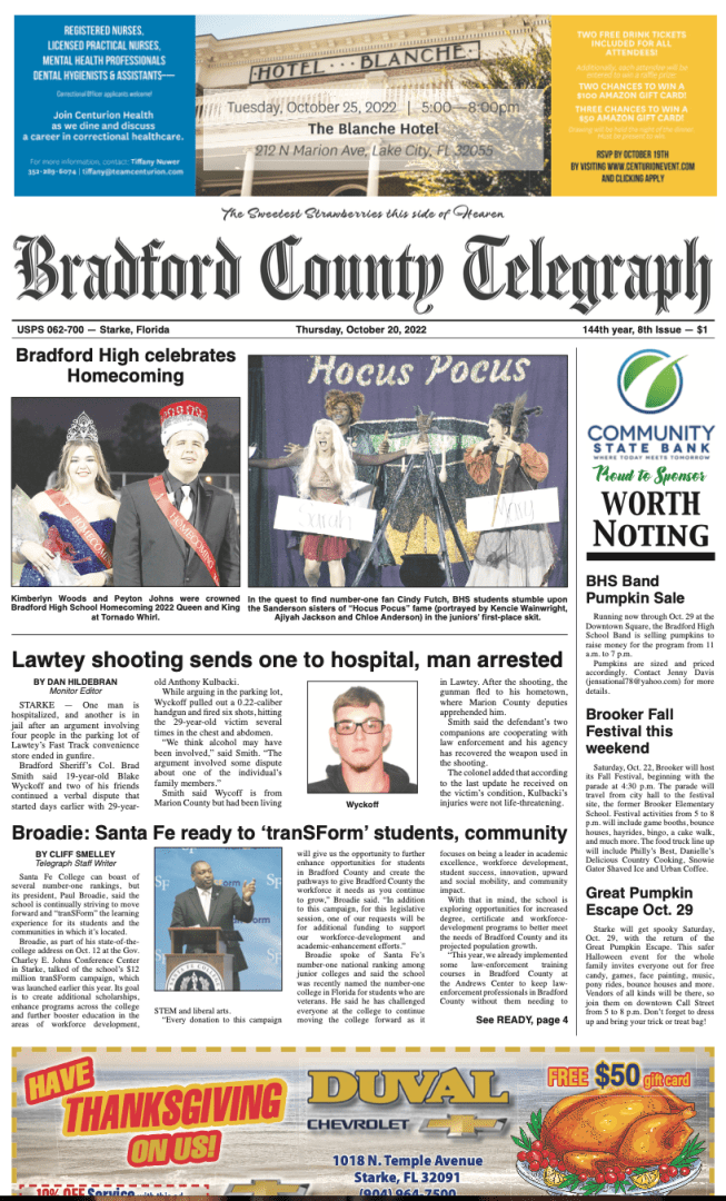 Telegraph–Times–Monitor for Oct. 20, 2022