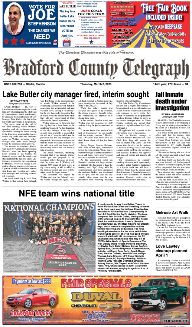 Telegraph–Times–Monitor for March 2, 2023