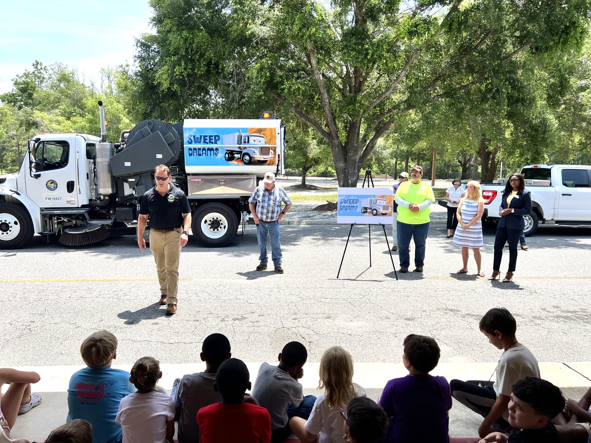Second graders christen county’s street sweeper