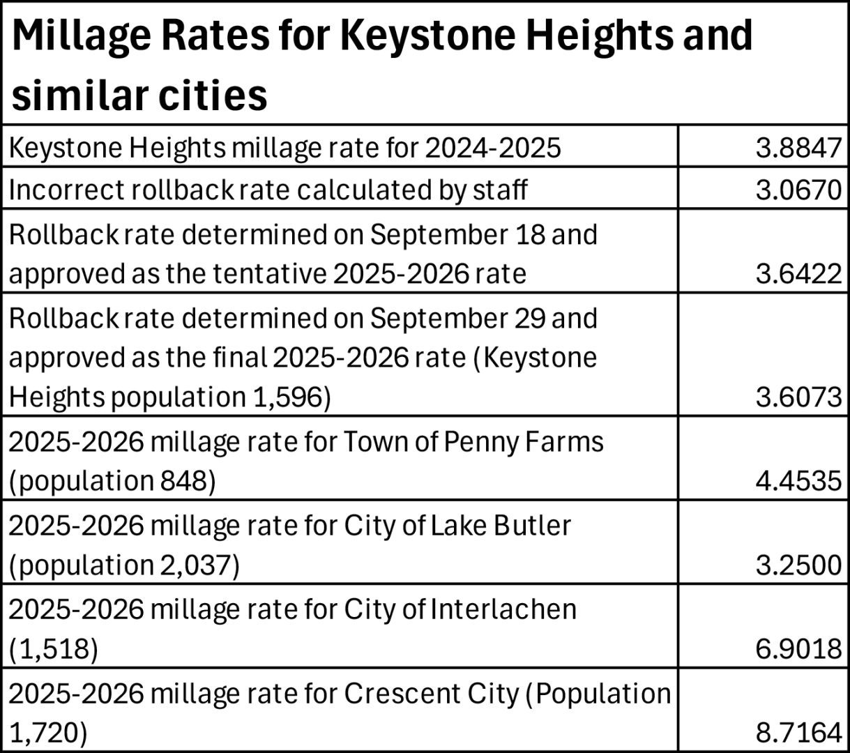 Keystone Heights council lowers millage rate for second time