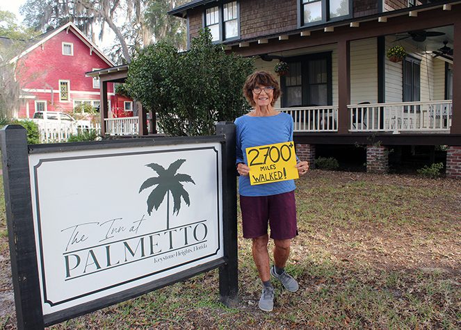 Woman cross-country walk brings her through area —