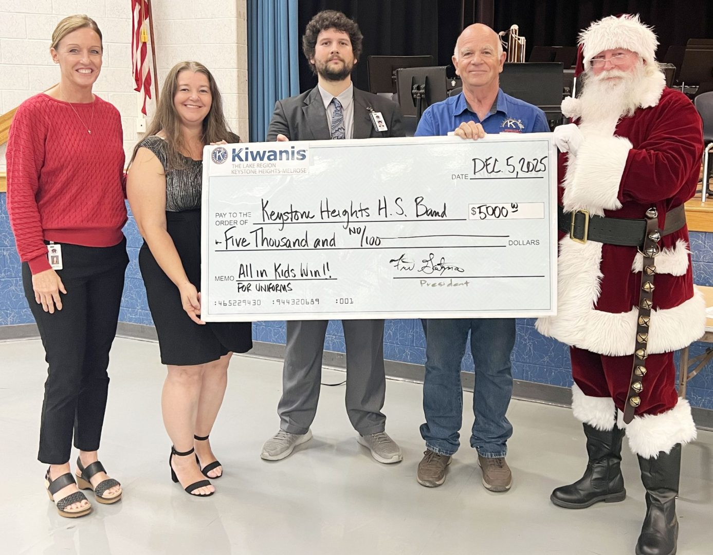 Lake Region Kiwanis donates $5,000 for band uniforms