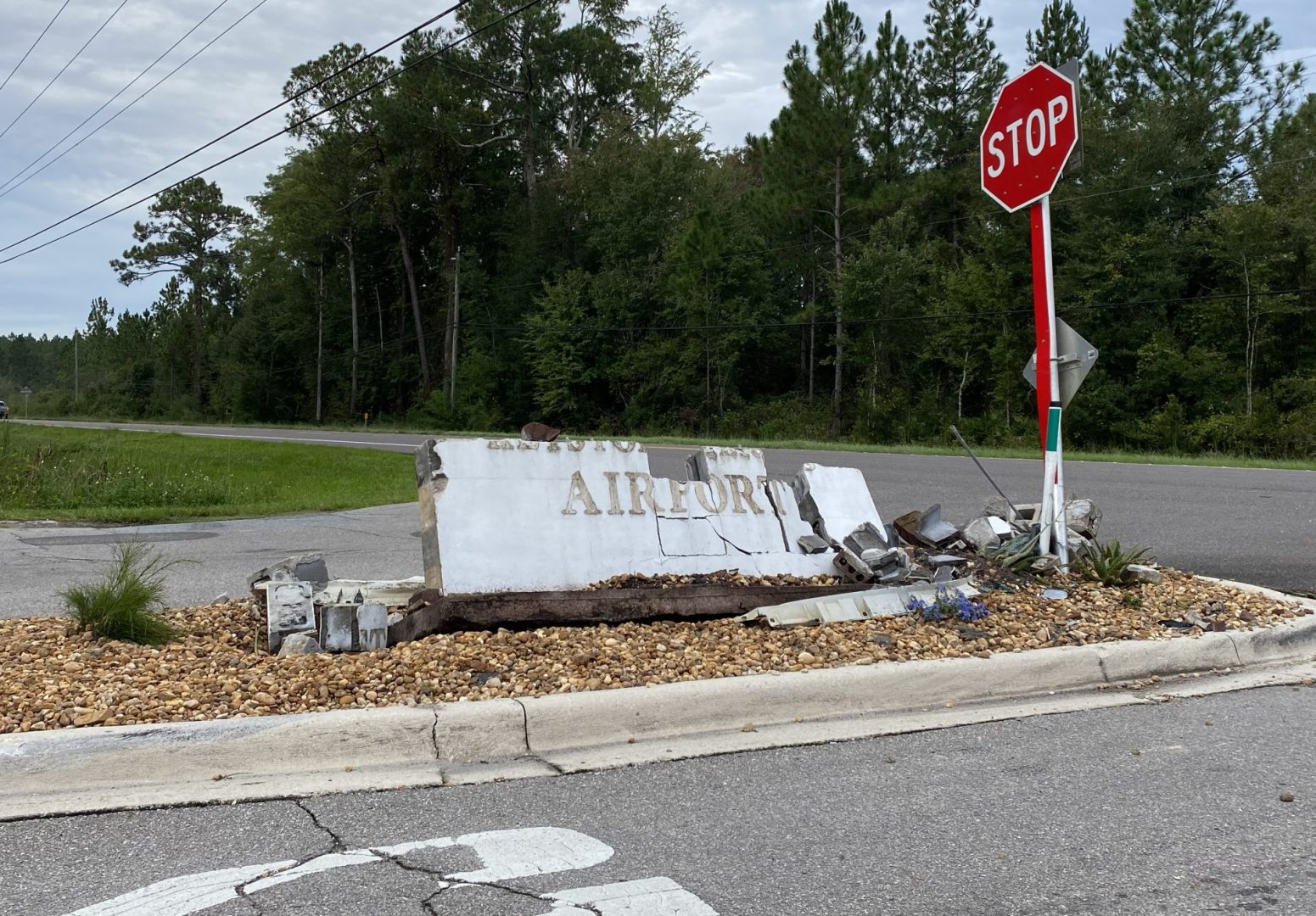Rubble from airport sign to be removed soon
