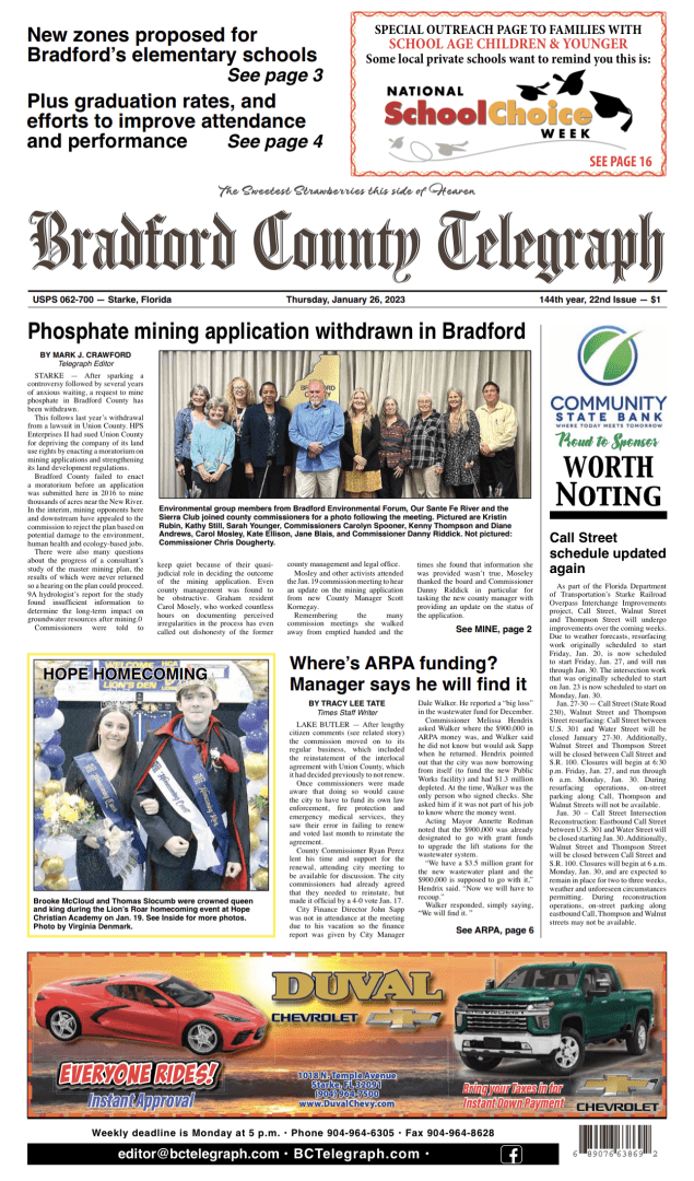 Telegraph–Times–Monitor for Jan. 26, 2023