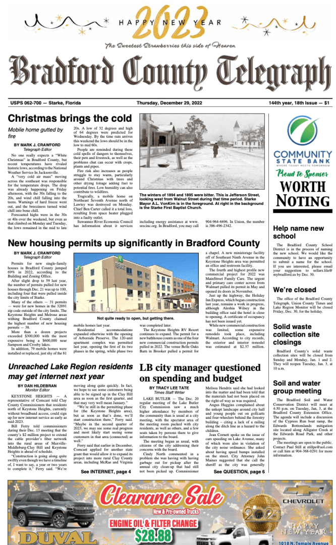 Telegraph–Times–Monitor for Dec. 29, 2022