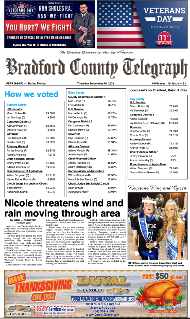 Telegraph–Times–Monitor for Nov. 10, 2022
