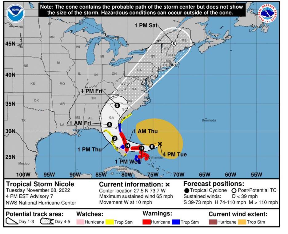 Nicole threatens wind and rain moving through area