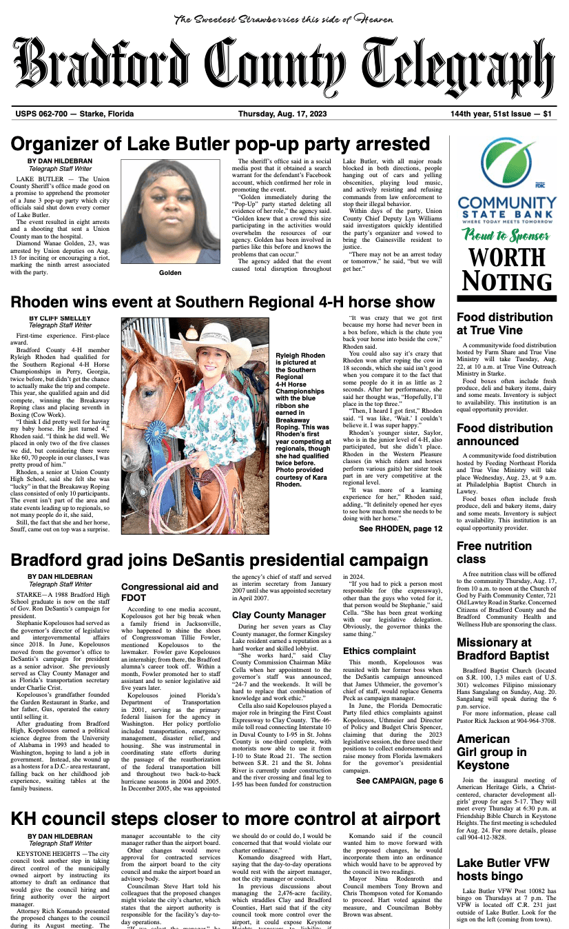 Telegraph–Times–Monitor for Aug. 17, 2023