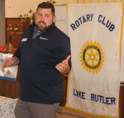 BY DAN HILDEBRAN [email protected] Union County High School graduate Justin Hanson returned to Lake Butler on Tuesday, April 22, to give the Rotary Club an
