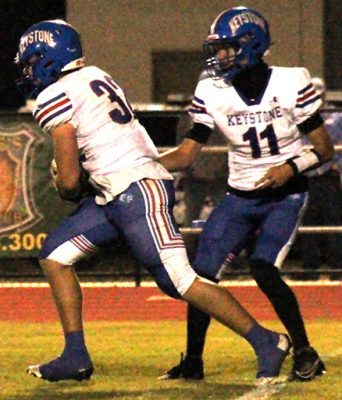 On Keystone’s first possession, Chiefland’s Jolan Doty picked off a pass at the Keystone 25. Running backs Demori Sweet and Trent Bright combined on six carries to give the Indians their second score and put them up 13-0 with 8:11 left in the first quarter.