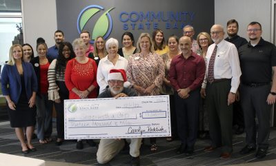 New Community State Bank Owner Don Wenner is the CEO and founder of DLP Capital, which also supported Starke Shop With a Cop with a donation of $12,000, which was presented to Starke Police Dept. Maj. Barry Warren, the coordinator of Starke Shop With a Cop, by DLP Capital and Community State Bank employees. Pictured are: (front row, l-r) James Eison, Frank Rodriguez, Andrea Crawford, Tammie Woodard, David Bridgeman, (middle row, l-r) Bob Peterson, Christopher Page, Jennie Reed, Carolyn Reddish, Warren, Andrea Wasson, Joseph Marsocci, (back row, l-r) Jon Grebinger and Wenner. Photo provided courtesy of Community State Bank of Starke.