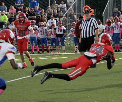 Cubbedge made another tackle for a 7-yard loss on the Bobcats’ next series, while Raymond had a sack for a 6-yard loss. A pass on fourth-and-23 was incomplete, giving the Bradford the ball at the Baker 3-yard line.
