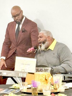 Musician Keith Taylor, pictured with Eldern McKnight, led attendees in “Lift Every Voice and Sing.”